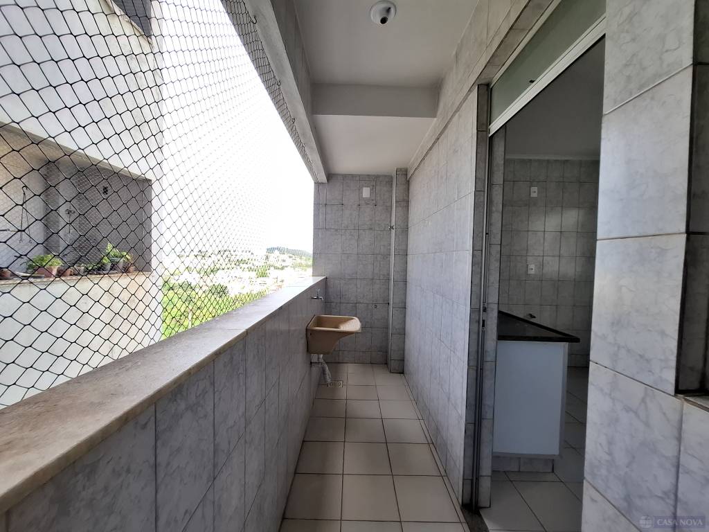 Um apartamento residencial com cerca de 100m2, com 03 dormitórios sendo uma suíte, 02 salas, copa, cozinha com armário embutido, área de serviço com banho, banho social com armário, elevador e porteiro diurno.