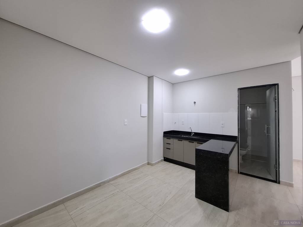 Kitnet de 40m² com cozinha planejada, armário embutido e bancada, dormitório suite, banho suite com box em vidro temperado. Espaço aconchegante, ideal para quem busca praticidade e conforto.