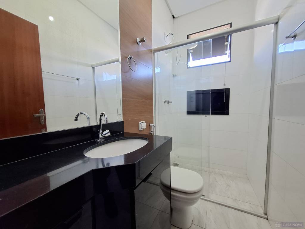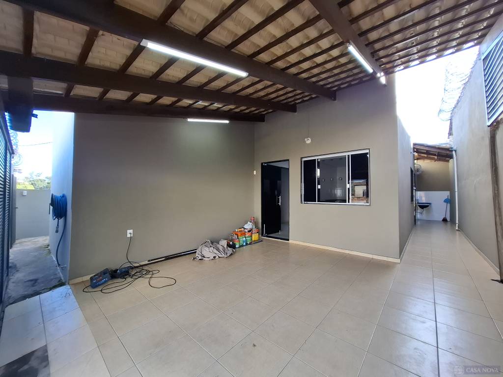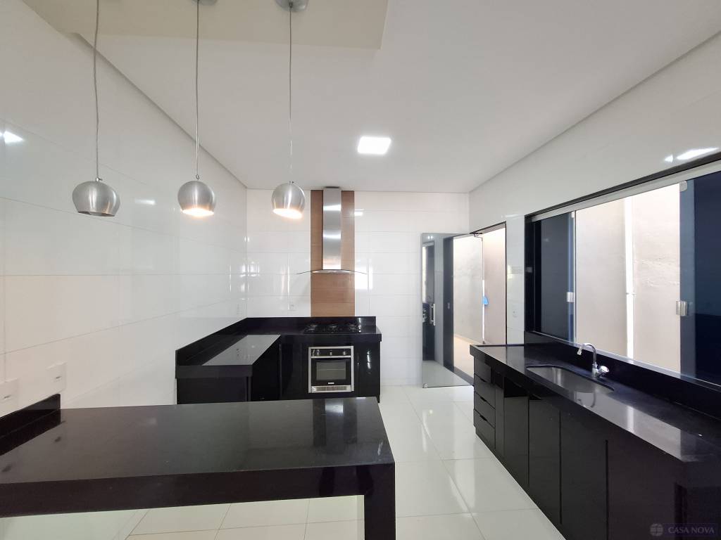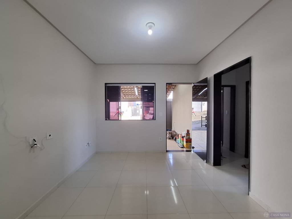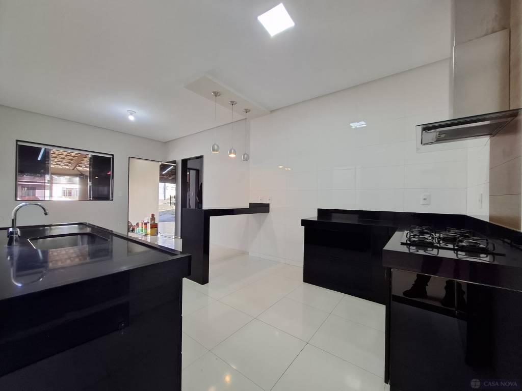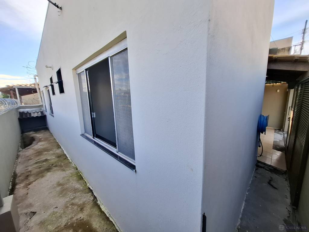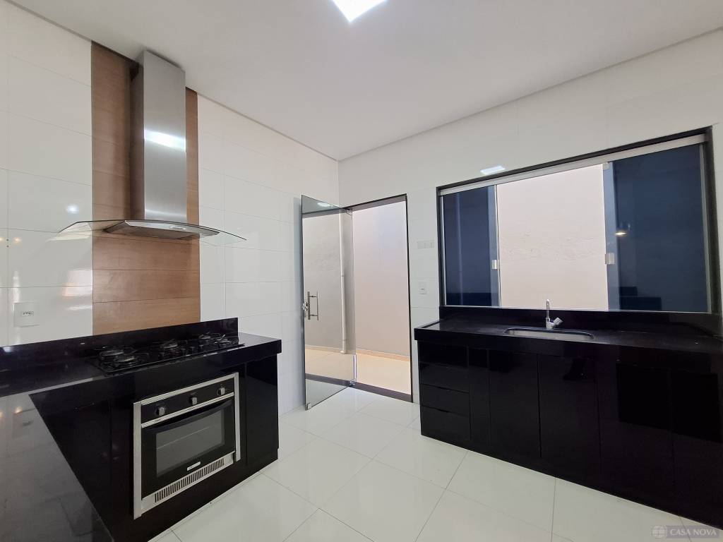 Uma casa residencial com cerca de 75 m², com 03 dormitórios (01 suíte), sala, cozinha com armários embutidos, cooktop, coifa, banho social e suíte com armário e box, área de serviço coberta, área lateral aberta, intefone, portão eletrônico e 01 a 02 vagas de garagem para carros compactos.
