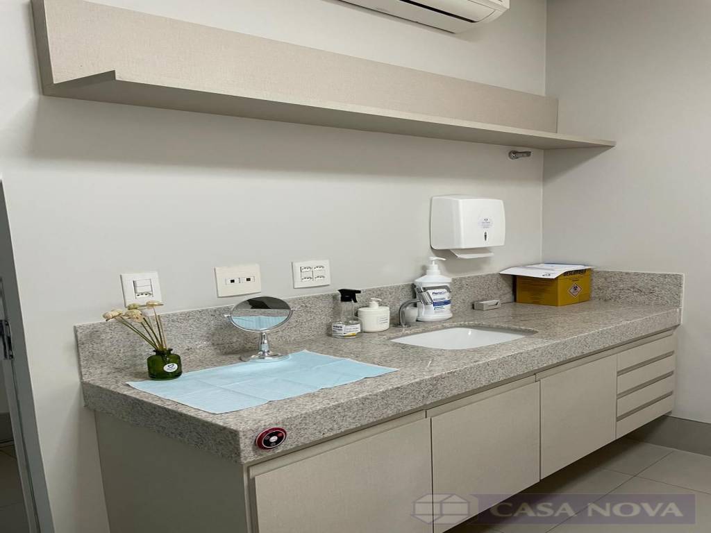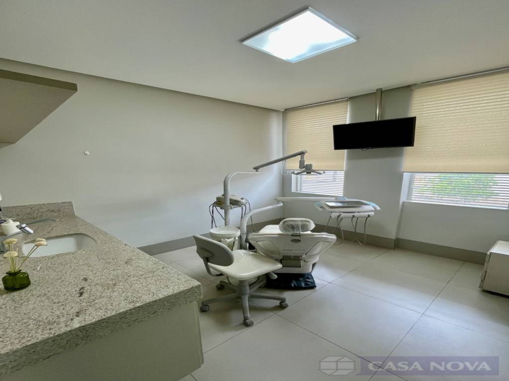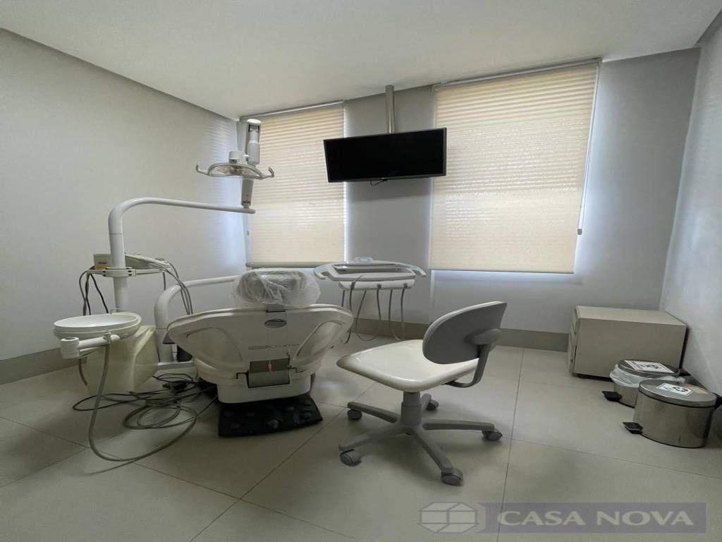 Uma sala comercial com cerca de 9m² montada para consultório odontológico. Toda montada com os equipamentos inclusos. O imóvel possui pia para higienização e o prédio contém 02 banheiros disponíveis para uso.