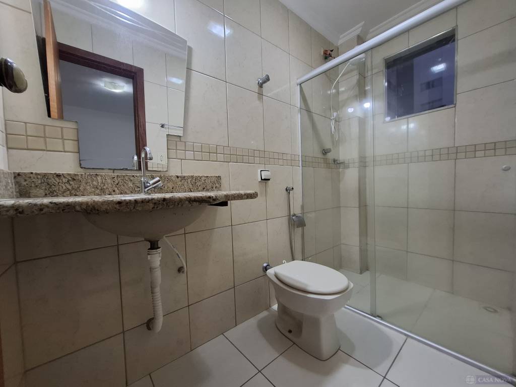Um apartamento residencial com cerca de 100 m², com 03 dormitórios, sendo 01 suíte com boxe em vidro temperado e sacada, sala, cozinha com armário embutido e bancada em granito, banho social com boxe em vidro temperado, área de serviço, interfone e 01 vaga de garagem.