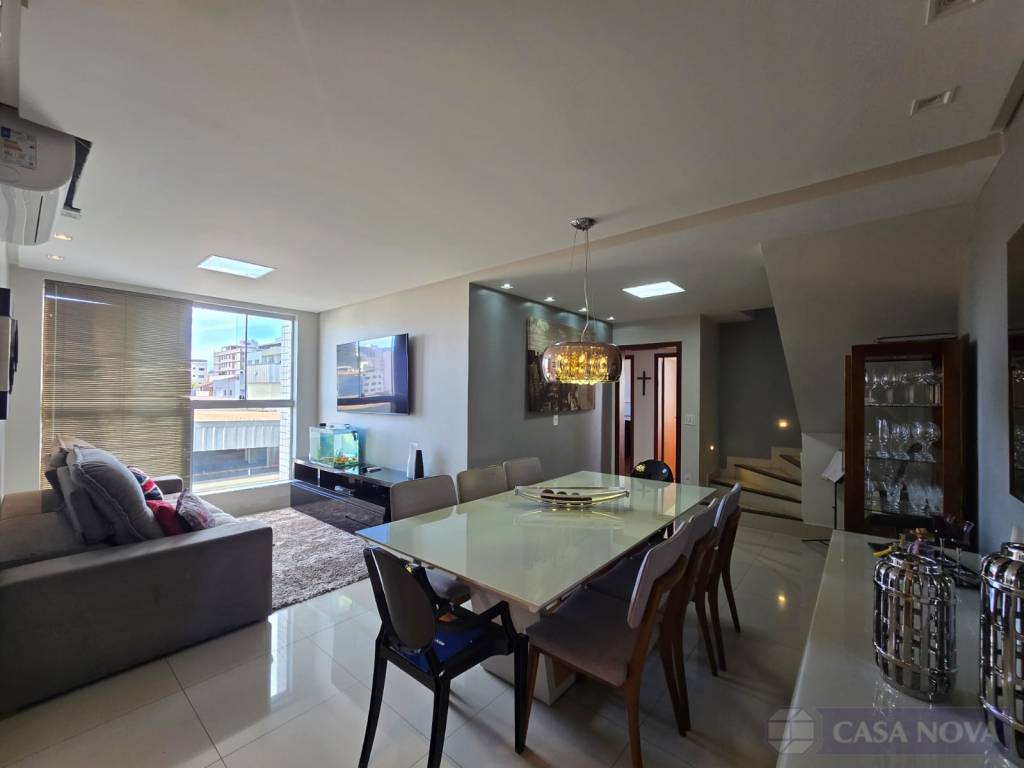 Cobertura duplex ampla e sofisticada, ideal para quem busca espaço, conforto e exclusividade em um imóvel diferenciado. Com 205m² muito bem distribuídos, o imóvel conta com 04 quartos, sendo 01 suíte, sala espaçosa, 02 cozinhas com armários planejados, copa, 03 banheiros com box e armários, além de excelente acabamento em todos os ambientes. O grande destaque fica para a área com churrasqueira, perfeita para momentos de lazer e confraternização. A cobertura dispõe ainda de elevador, portão eletrônico, interfone, gás canalizado e impressionantes 06 vagas de garagem, um diferencial raro e extremamente valorizado. Uma excelente oportunidade para quem deseja morar com alto nível de conforto, praticidade e muito espaço.