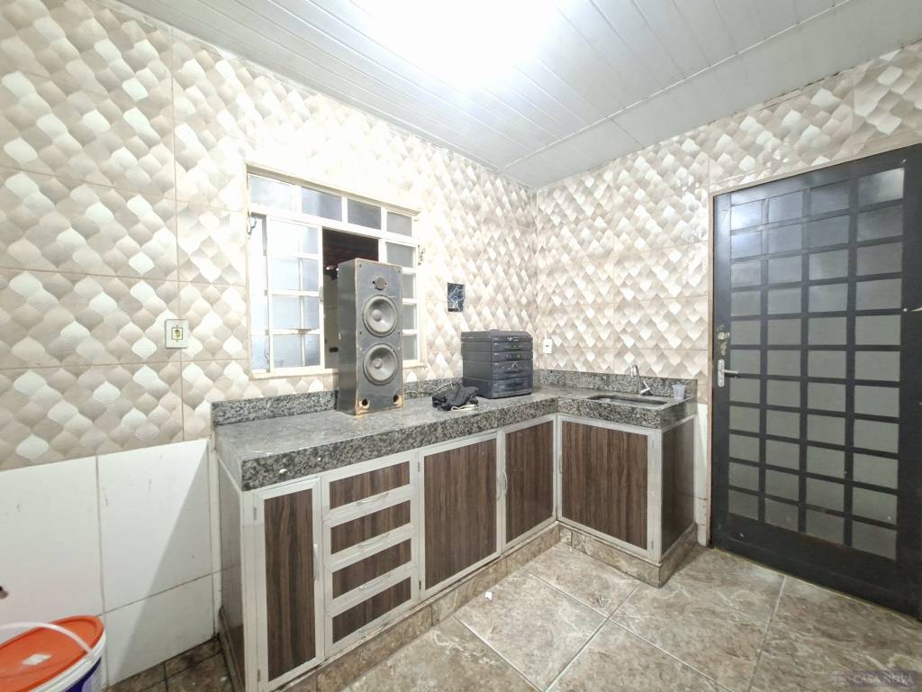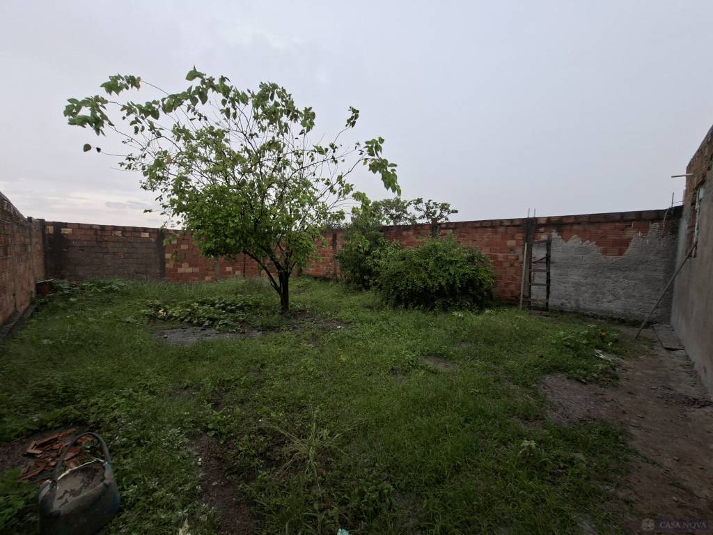 Uma casa residencial com aproximadamente 90m², 03 quartos, copa, sala, cozinha, banho social e 02 vagas de garagem.